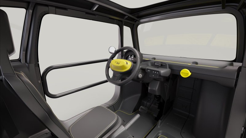 Este buggy eléctrico también presume de un alerón negro trasero, llantas doradas de 14" y un nuevo logo amarillo. Es la opción perfecta para espíritus curiosos que ven la movilidad como una extensión de su estilo de vida.