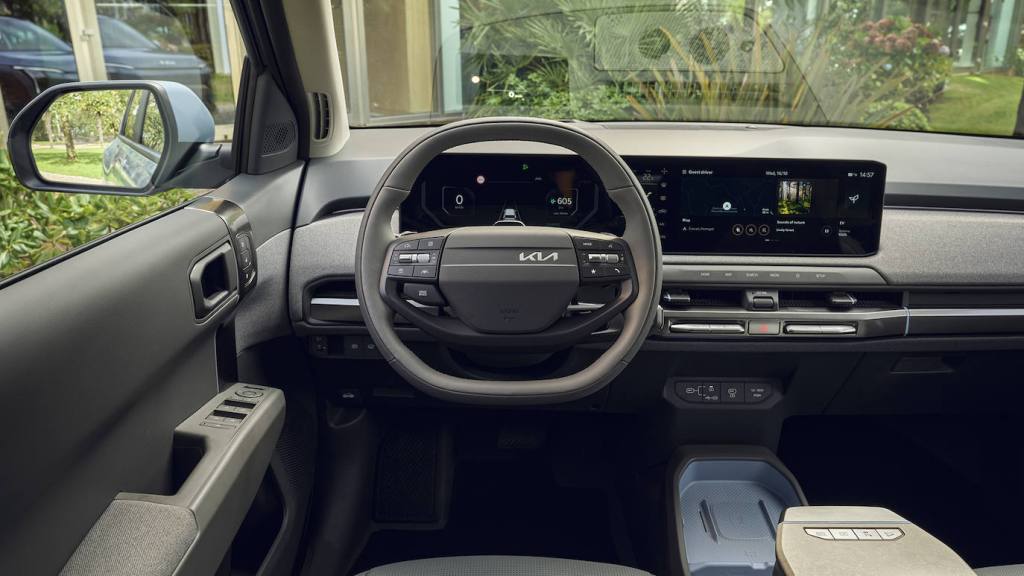 El espacioso interior del EV3 ofrece una sensación de salón, con una serie de características de uso creadas para hacer que cada viaje sea cómodo y práctico. El salpicadero, limpio y despejado, tiene una triple pantalla panorámica, dos de ellas táctiles de 12,3” (31 cm) que facilitan la visión y la operación del conductor, más una pantalla segmentada de 5,3” (13 cm) para el climatizador. Un Head-up Display de 12,3” (31 cm) pone toda la información necesaria en la línea de visión del conductor. Al igual que el EV9, el EV3 logra un excelente equilibrio entre mandos y controles táctiles para las funciones interiores que ayudan a minimizar la distracción del conductor.