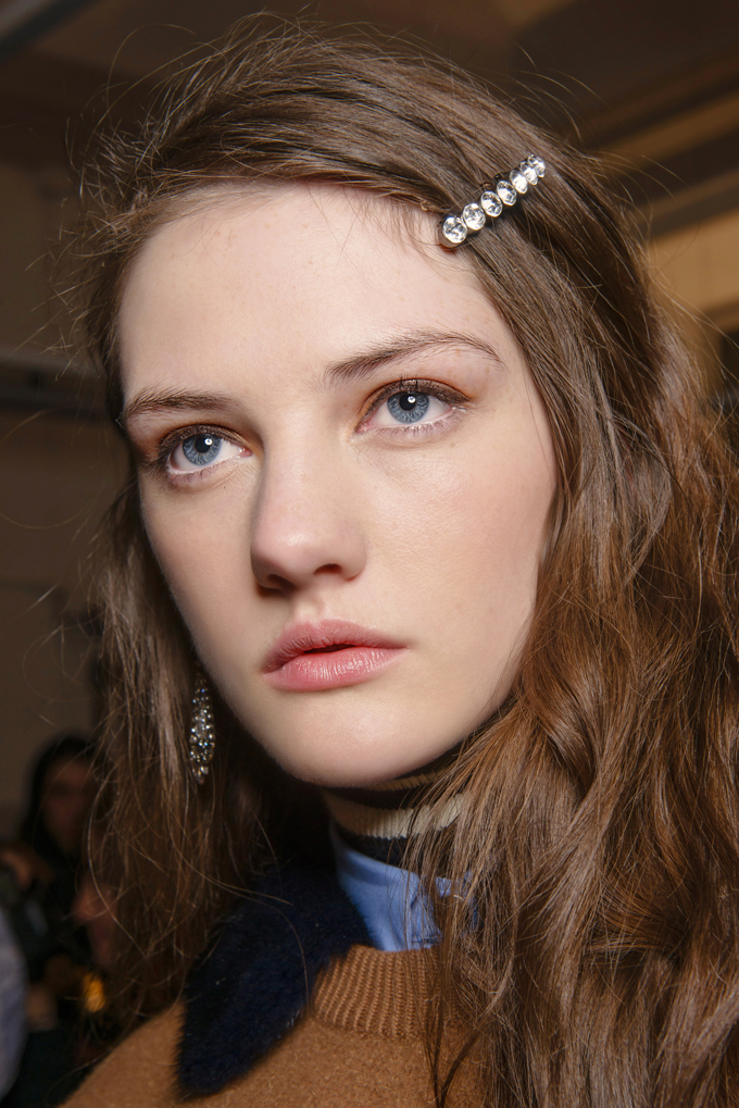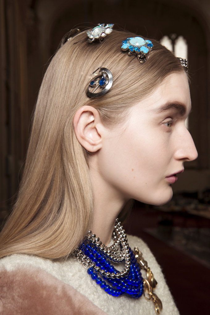 Los broches de pedrería son un complemento que se ajusta a cualquier tipo de cabello. Opta por ellas con el pelo corto pero también pueden lucirse con largo como en el desfile de Toga.