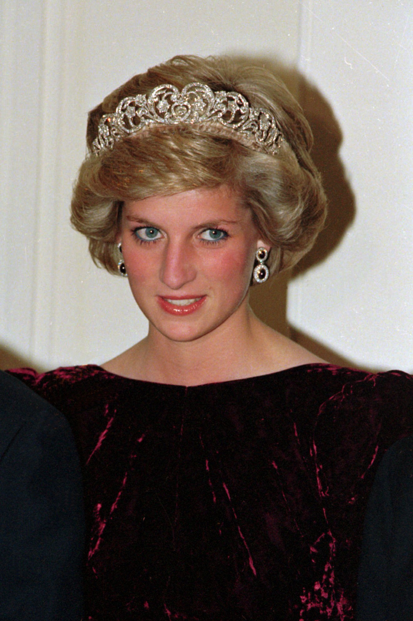 Diana no se cortó el pelo hasta finales de la década. Recordamos esta aparición en 1984, con una melena semilarga, parcialmente recogida.