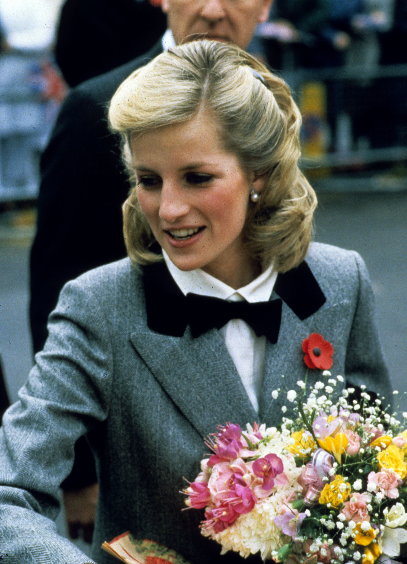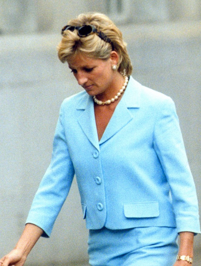Lady Di siguió apostando por complementos, como la diadema, para completar su look ultra corto.