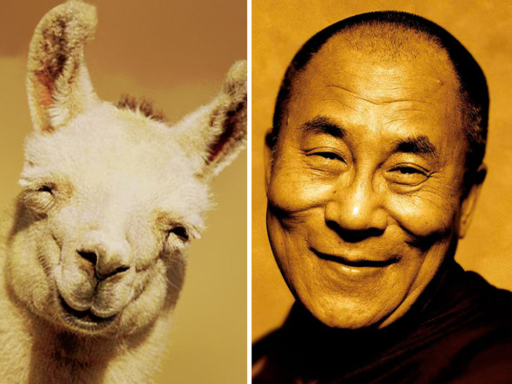 El Dalai Lama y una llama