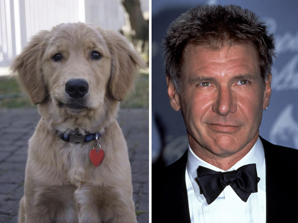 Un cachorro y Harrison Ford