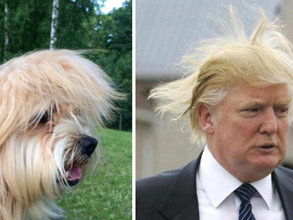 Donald Trump y un perro con tupé