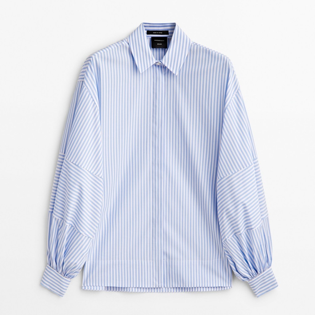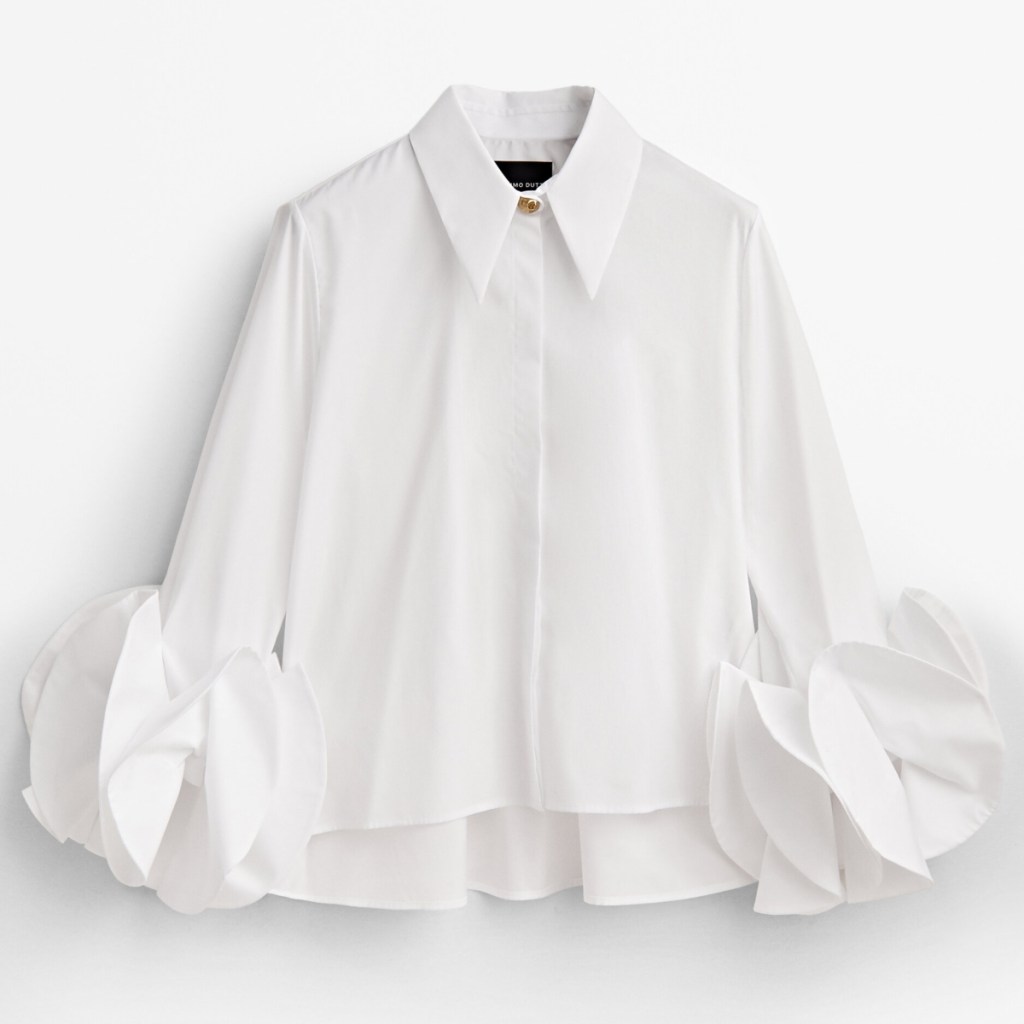 Nos gustan los básicos, cierto. Esas prendas que sabes que incorporas al vestidor y funcionan siempre, te solventan cualquier look sin importar el contexto y configuran el perfecto armario cápsula. Hablamos de unos pantalones vaqueros Levi's, el blazer negro y cruzado de Zara, la camiseta de rayas de Mango que no nos quitamos en todo el verano, esos zapatos planos con los que podemos trotar 24/7 y, como no, la camisa blanca. Pero también es verdad que adoramos aquello que nos cautiva y nos mueve, que tan sólo mirarlo despierta algo que, por algún motivo, nos emociona. Y eso, en muchas ocasiones, nos pasa con prendas de ropa. Revisiones de patrones clásicos como este de Massimo Dutti Studio que se cargan de volumen, de movimiento y de cierta opulencia que las líneas sencillas de la tradicional camisa blanca nunca tendrían de por sí.
