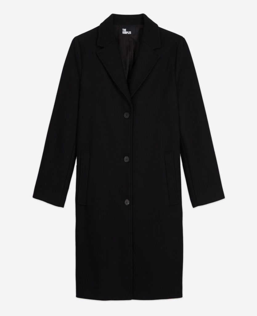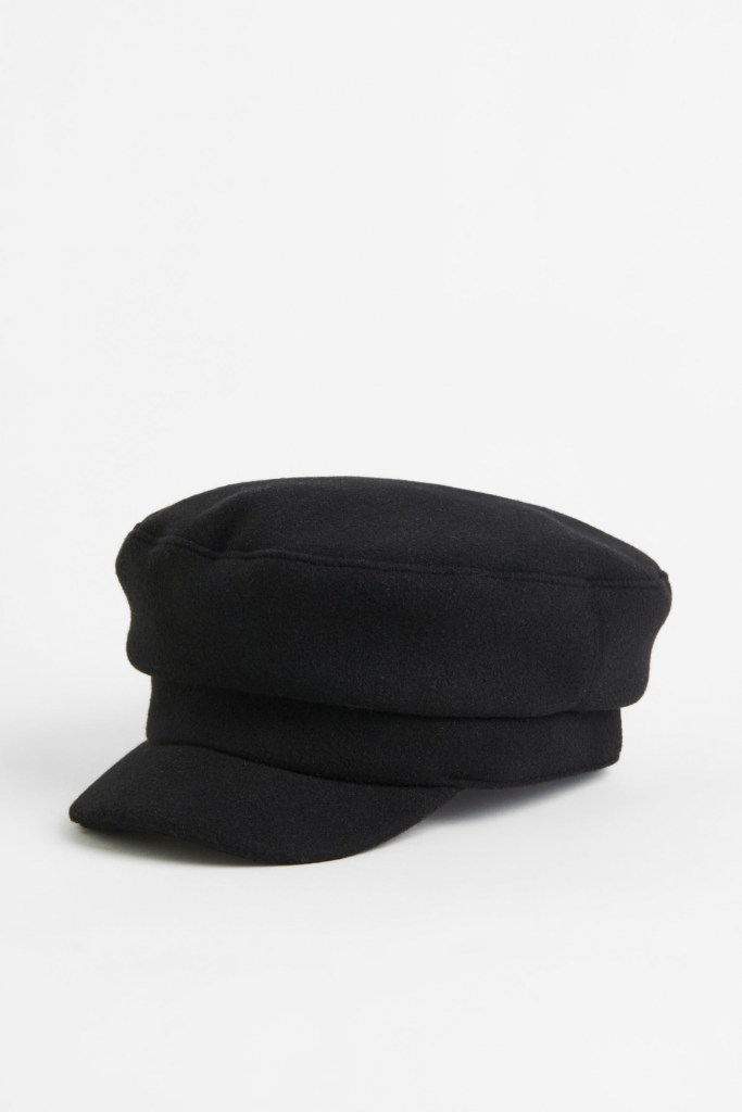 Para una jornada de largas reuniones, Eugenia escoge piezas del fondo del armario y las eleva con una buena elección de accesorios. Como base, una abrigo negro, un jersey de punto a juego y un pantalón de traje beige oscuro. Como detalles, una gorra baker, unas zapatillas deportivas (que añaden color) y joyas minimal.