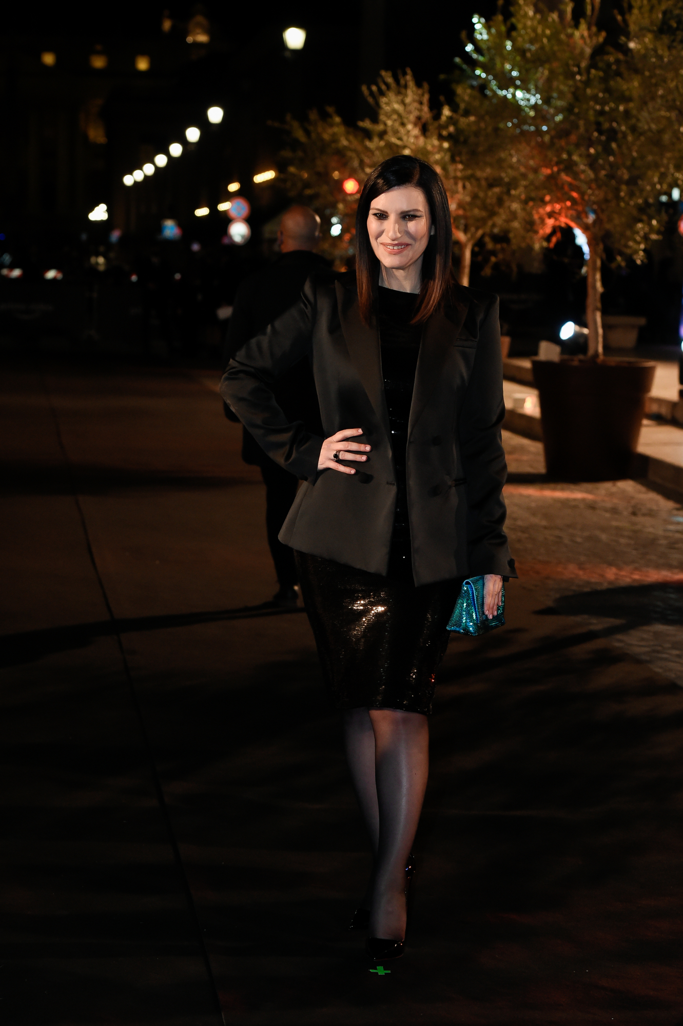 Para la ocasión, la cantante italiana se decantó por un Giorgio Armani, derrochando elegancia y clase gracias al diseño estructural pero con caída fluida del vestido negro.