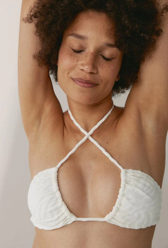 Este tipo de tops ayudan a estilizar mucho el pecho sin necesidad de aros, creando una especie de efecto "push up" más natural, ligero y cómodo. El top cuesta 49,99 euros y la braguita 44,99 euros.