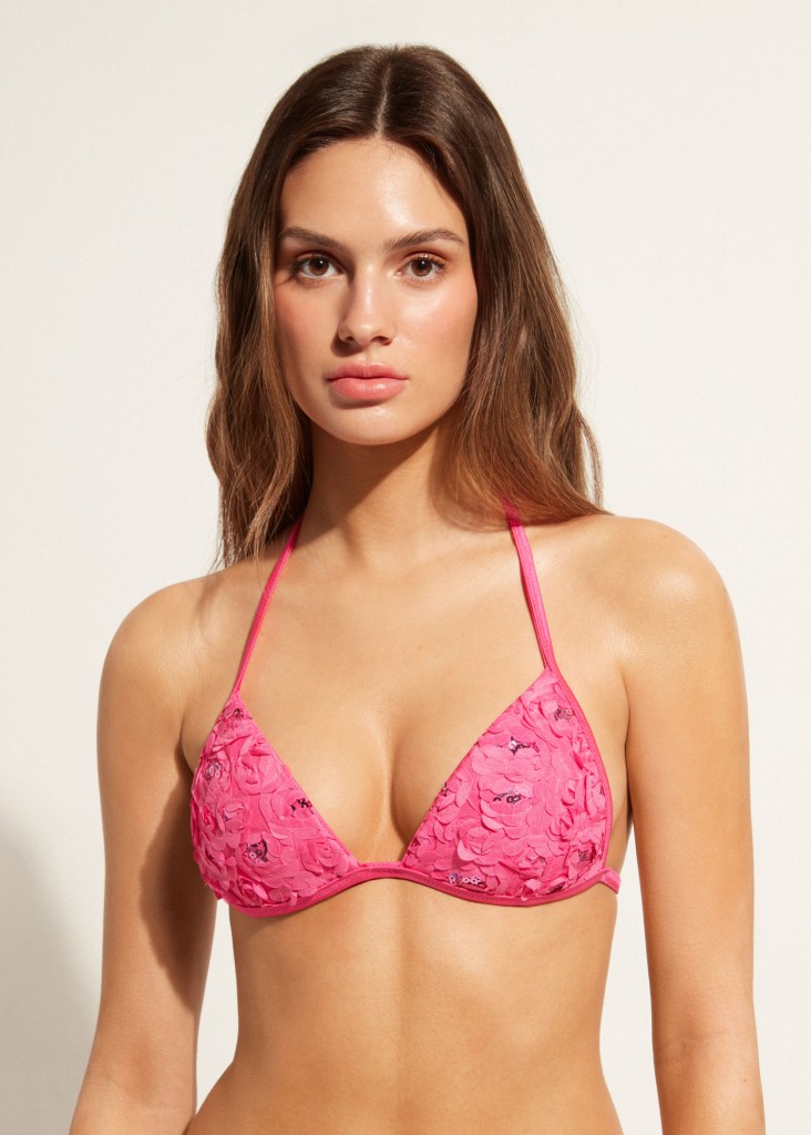 En la línea de los volantes para conseguir ese efecto de "pecho más grande" también tenemos los bikinis 3D, como este de Calzedonia, disponible tanto en rosa como en blanco. El top cuesta 40 euros y la braguita a juego 20 euros.
