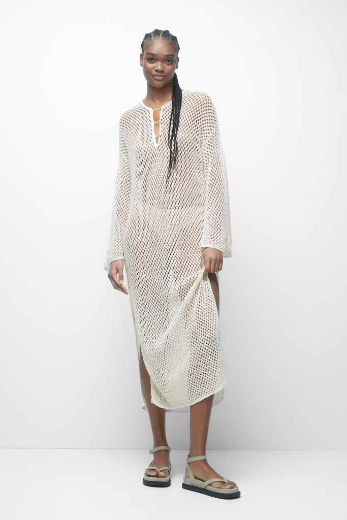 Este tipo de vestidos de crochet, pensados para poner tanto con un bikini debajo como con otro mini vestido ajustado, son un clásico en verano. Y más en este color crudo. 35,99 euros 19,99 euros.
