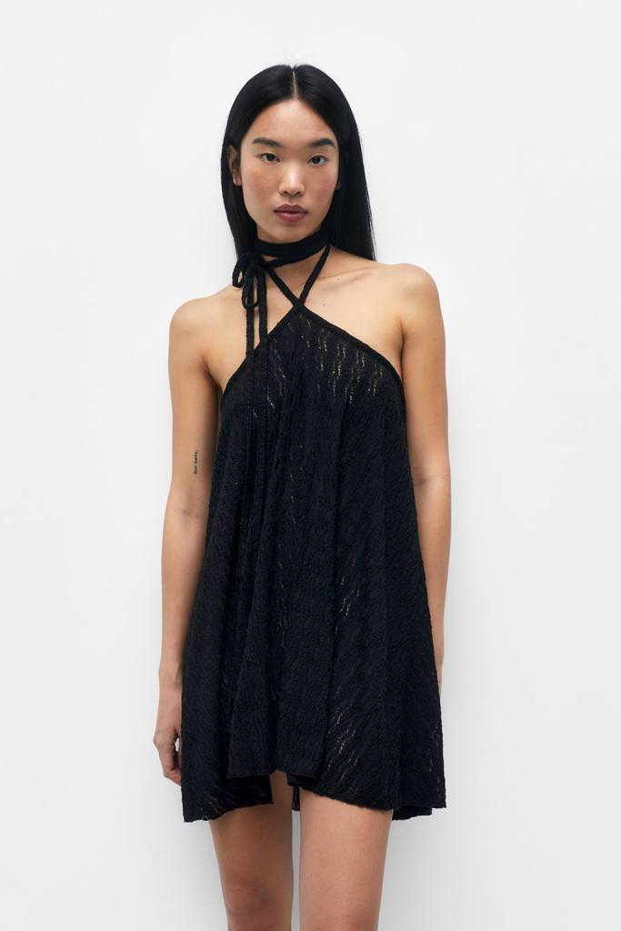 También confeccionado en crochet tenemos este mini vestido negro con escote halter y mucho vuelo. Un diseño de lo más veraniego que encajará en cualquier ocasión. 19,99 euros 12,99 euros.