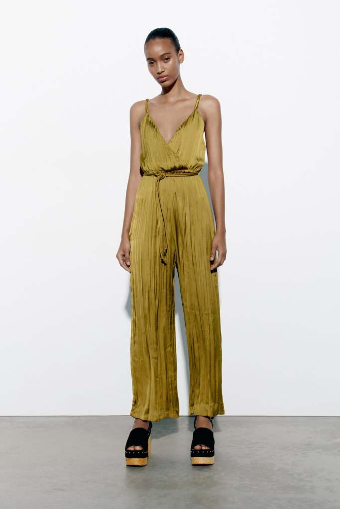 Mono de escote pico y doble tirante fino con cintura elástica de Zara (22,99 euros)