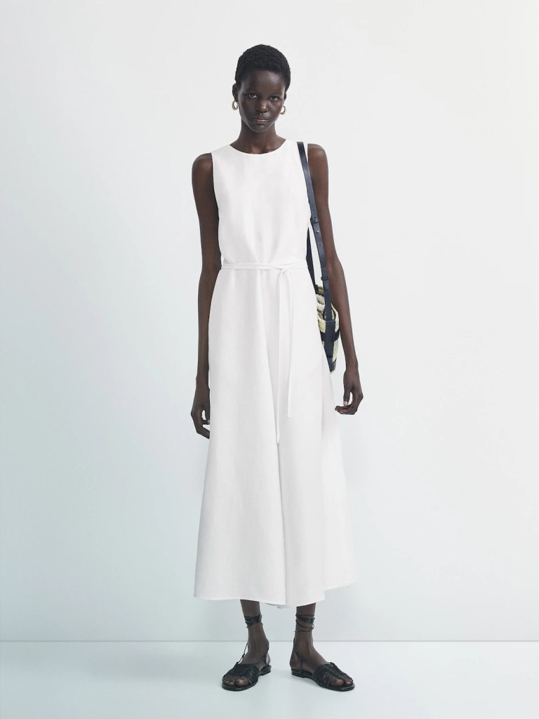Mono de lino con abertura en la espalda y cintura ceñida de Massimo Dutti (99,95 euros)