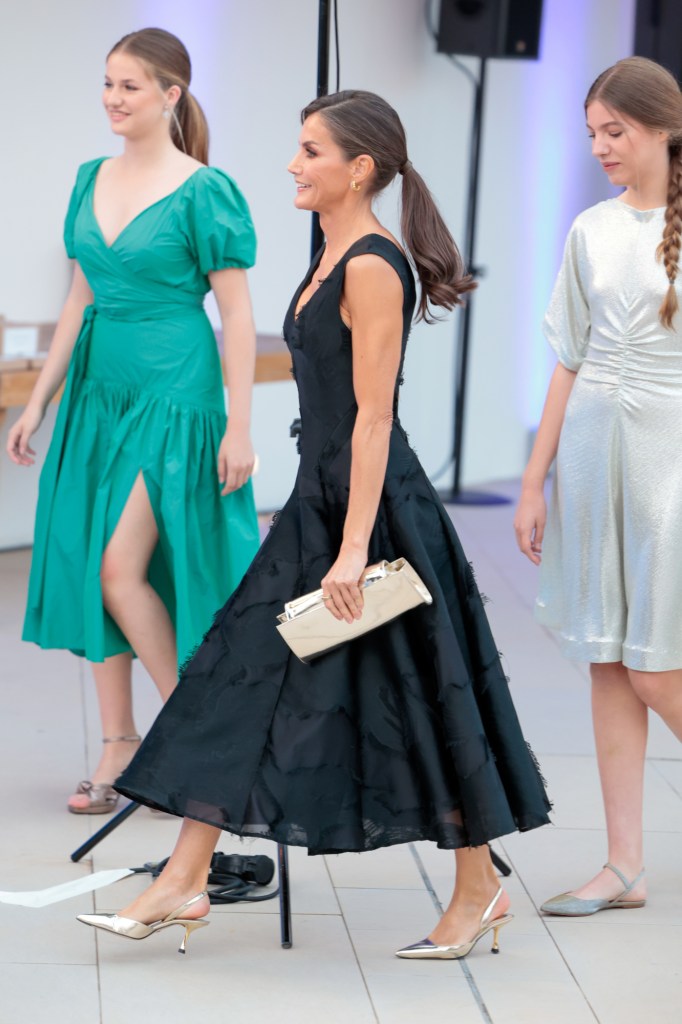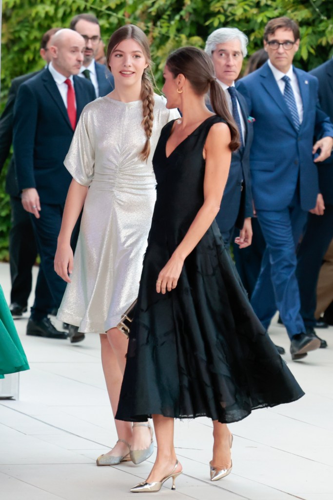 La textura de sus looks también van acorde con el de su madre, doña Letizia, aunque la reina ha optado por el color más elegante y oscuro de la gama cromática: el negro. Letizia Ortiz también presume de un pronunciado escote, pero a diferencia de su hija mayor, que se ha decantado por uno tipo corazón, ella lo ha preferido en forma de V, lo cual lo hace especialmente sexy; al igual que el escote con el que cuenta la espalda de la prenda.