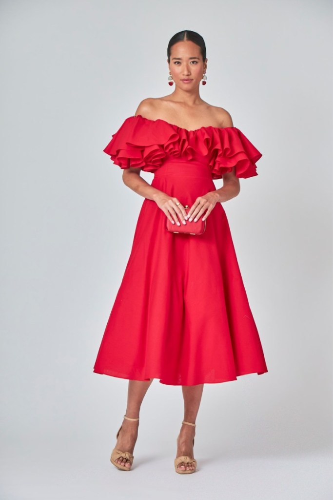 La actriz posó en photocall de la Copa del Rey Mapfre enfundada en un vestido que, como ya es costumbre en ella, nos ha dejado de piedra y completamente enamoradas. Se trata de una pieza de Coosy de corte midi y color rojo, uno de los tonos que más fuerza ha adquirido este verano 2023.