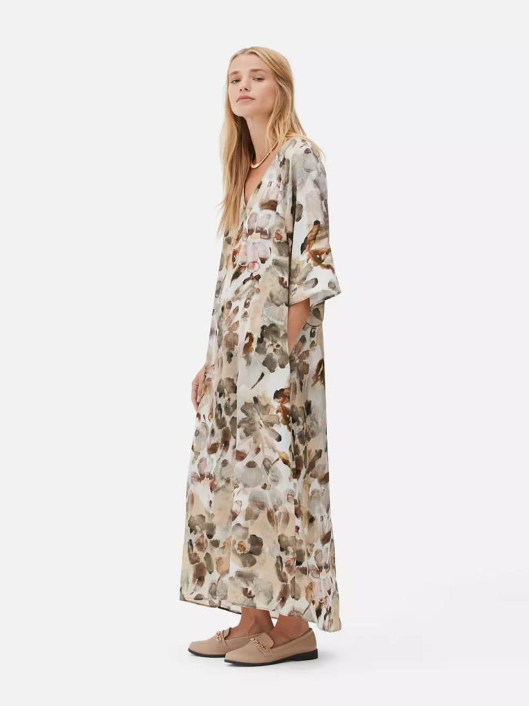 Con un romántico diseño de flores tenemos este vestido tipo túnica, una opción fluida y con mucho movimiento que acepta desde sandalias o mocasines hasta zapatillas y botas. 30 euros.