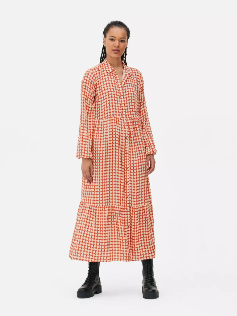 Por último tenemos este otro vestido camisero, un diseño naranja de lo más vivo que sienta genial con botas. 25 euros.