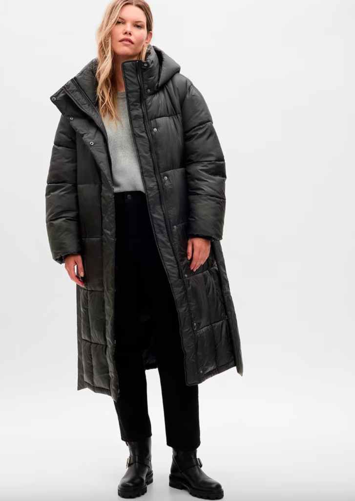 Abrigo acolchado negro largo de GAP. Precio: 229,95 euros, 137,97 euros.
