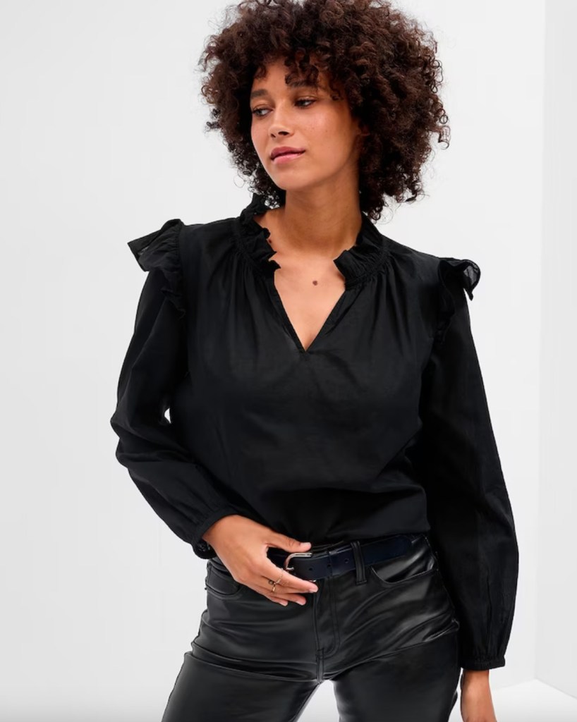 Un clásico que no podía faltar en esta selección es la clásica blusa de manga larga con volantes, este modelo de GAP los lleva en la parte de los hombros. Es una apuesta más que asegurada cuando no sabemos qué ponernos. Precio: 54,99 euros 27,49 euros.