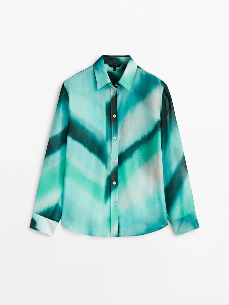 Camisa con estampado tie dye en tonos azules confeccionada en tejido 100% ramio. Precio: 49,95 euros, 59,95 euros.