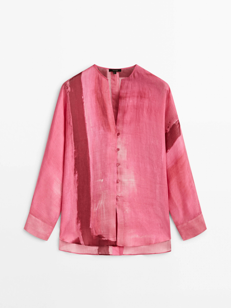 Camisa con estampado tie dye en tonos rosas confeccionada en tejido 100% ramio. Precio: 39,95 euros, 59,95 euros.