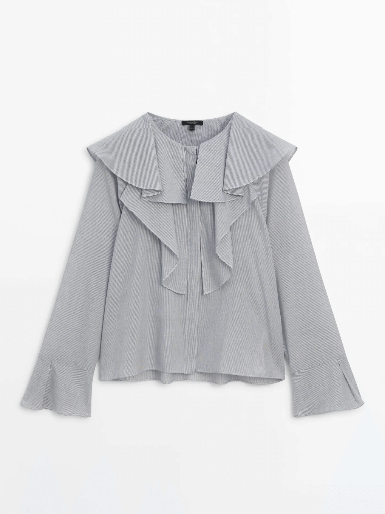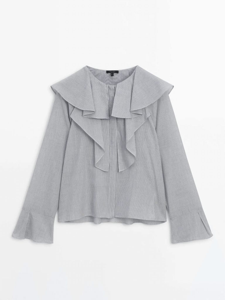 Camisa con estampado de rayas con detalle de volantes. Precio: 39,95 euros, 59,95 euros.