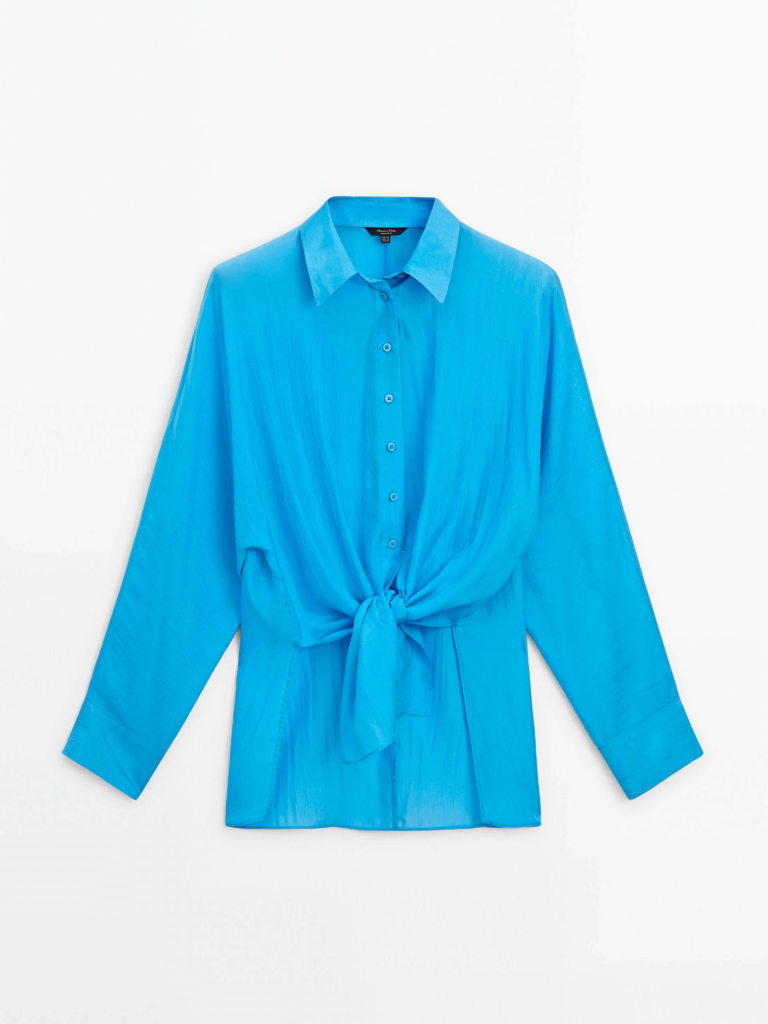 Camisa azul confeccionada en tejido 100% seda con pliegue en la espalda y acabado efecto arrugado. Precio: 39,95 euros, 59,95 euros.