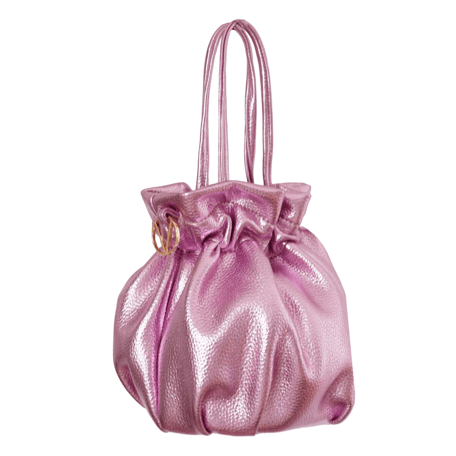 Con el fin de cerrar el look de invitada por todo lo alto, Gimeno se ha decantado por un bolso tipo bombonera metalizado en oro rosado. Este bolso de It's Lava tiene un precio de 75 euros y es un accesorio estelar para elevar un estilismo de fiesta sin apenas esfuerzo.