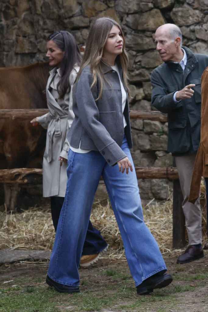 Por último tenemos a la infanta Sofía, que apostó por unos vaqueros, una cazadora gris y unos botines negros para su visita al pueblo asturiano.
