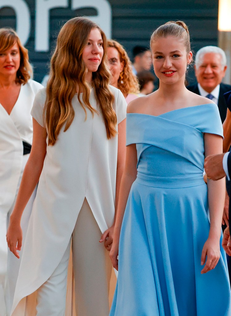 Leonor y Sofía volvieron a demostrar que siguen muy de cerca los pasos marcados por su madre; luciendo sendos estilismos made in Spain con los que, al igual que ella, quisieron dar un impulso a la moda nacional. La princesa Leonor decidió apostar por un look bailarina protagonizado por un vestido vaporoso en tono azul cielo diseñado por Miphai, que combinó con unos elegantes salones destalonados. Un diseño de corte midi, con cuello escote bardot y falda estilo lady, con el que la heredera al trono volvió a dar muestras de su clásico estilo a la hora de acudir a eventos de este calado. Aunque sin duda el outfit que más llamó la atención a su llegada al Museo de las Aguas de Cornellà fue el de la infanta Sofía. Hasta el momento, la hija menor de los Reyes había conseguido mantenerse en un inteligente segundo plano, acostumbrada a permanecer a la sombra de su hermana Leonor. Sin embargo, el pasado lunes consiguió dar un paso adelante para convertirse ya, a pesar de su corta edad, en todo un referente de estilo en nuestro país.